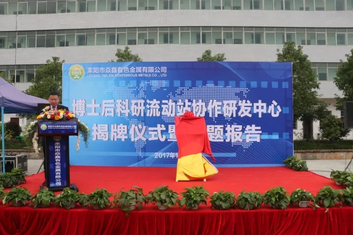 儀式宣讀了省人社廳《關(guān)于批準(zhǔn)耒陽市焱鑫有色金屬公司設(shè)立博士后科研流動站協(xié)作研發(fā)中心的批文》,并向進(jìn)站博士后及合作導(dǎo)師頒發(fā)了聘書。