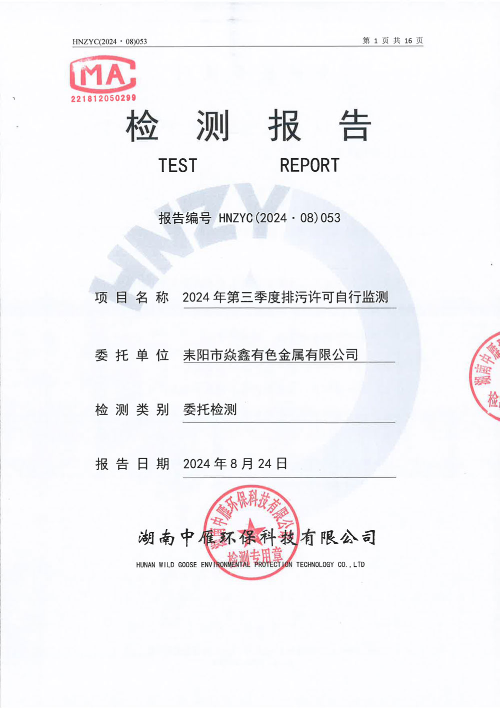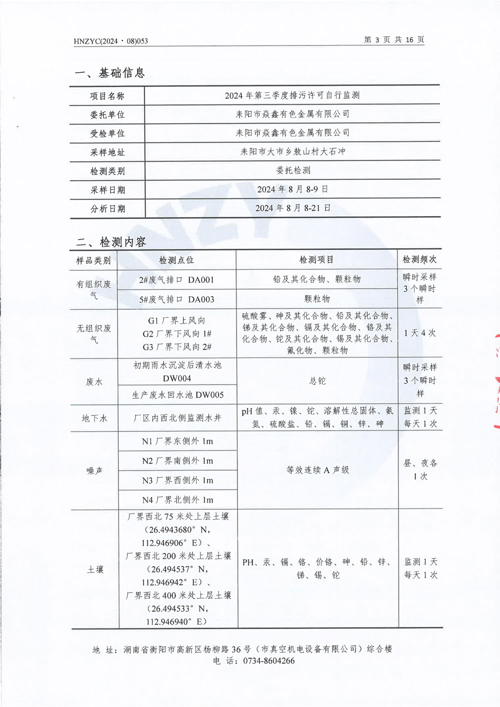 2024年第三季度排污許可自行監(jiān)測檢測報告